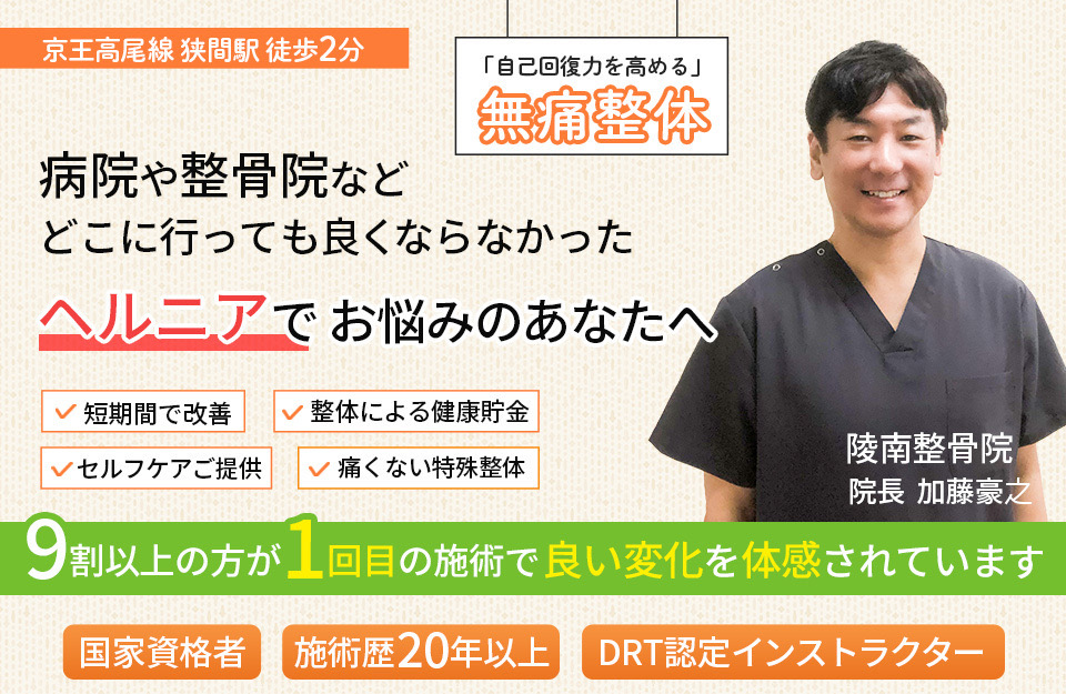 | 腰痛椎間板ヘルニアは、腰椎椎間部の繊維輪の抵抗が弱くなったり、断裂によって髄核が飛び出すことで起こるヘルニアです。 20歳〜40歳代に多く、好発部位は、L4(腰の4番の骨)〜L5(腰の5番の骨)、L5(腰の5番の骨)〜S1(仙骨1番の骨)で、L4〜L5ヘルニアでは、L5(腰の5番の)神経根が、L5〜S1ヘルニアでは、S1(仙骨1番の)神経根が障害を受けます。 「重いものを持ち上げた」などが原因で、「急に体も動かせないぐらいの腰痛に襲われた」などの症状があります。2日〜3日ほど安静にしていると痛みは少なくなりますが、代わって圧迫を受けている神経根の支配領域に一致した下肢痛(放散痛)が出現します。 巨大な正中ヘルニアでは、馬尾圧迫症状(腰痛、下肢の神経痛・しびれ、尿障害、直腸膀胱障害、尿・便失禁、性機能障害など)が認められます。 陵南整骨院では、背骨〜骨盤のゆがみを調整することで、脳〜筋肉への神経伝達をスムーズにし、人が本来持っている自己治ゆ(回復)力を高めていきます。 自己治ゆ力が高まれば、時間の経過とともに、どんどん改善していきます。 陵南整骨院は腰痛・ぎっくり腰・腰痛ヘルニア・坐骨神経痛の治療に専門特化しております。 腰の痛みやヘルニア、お尻や足に痛みやしびれでお悩みのあなた、お一人で悩まず、まずは当院にご相談ください。 |